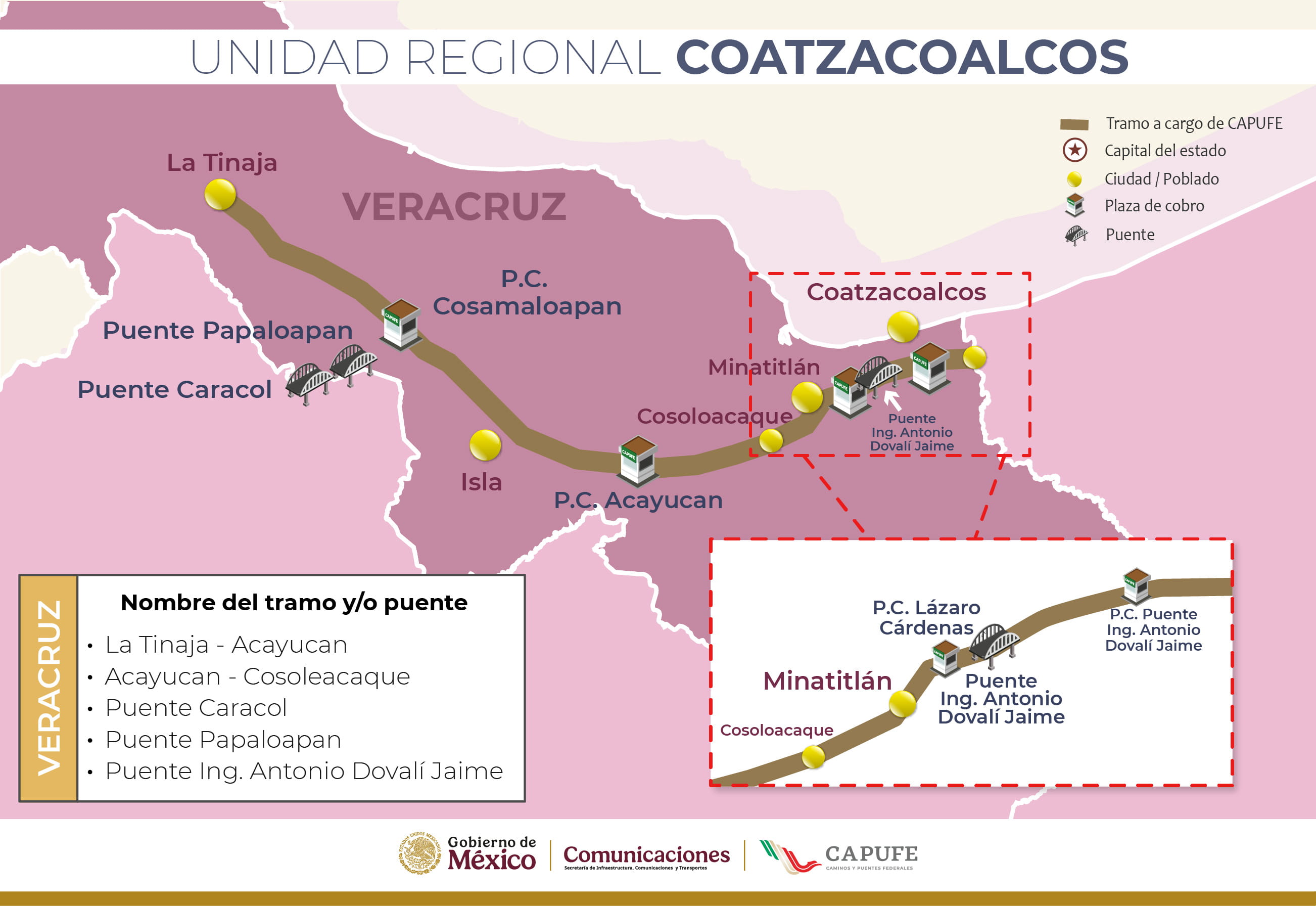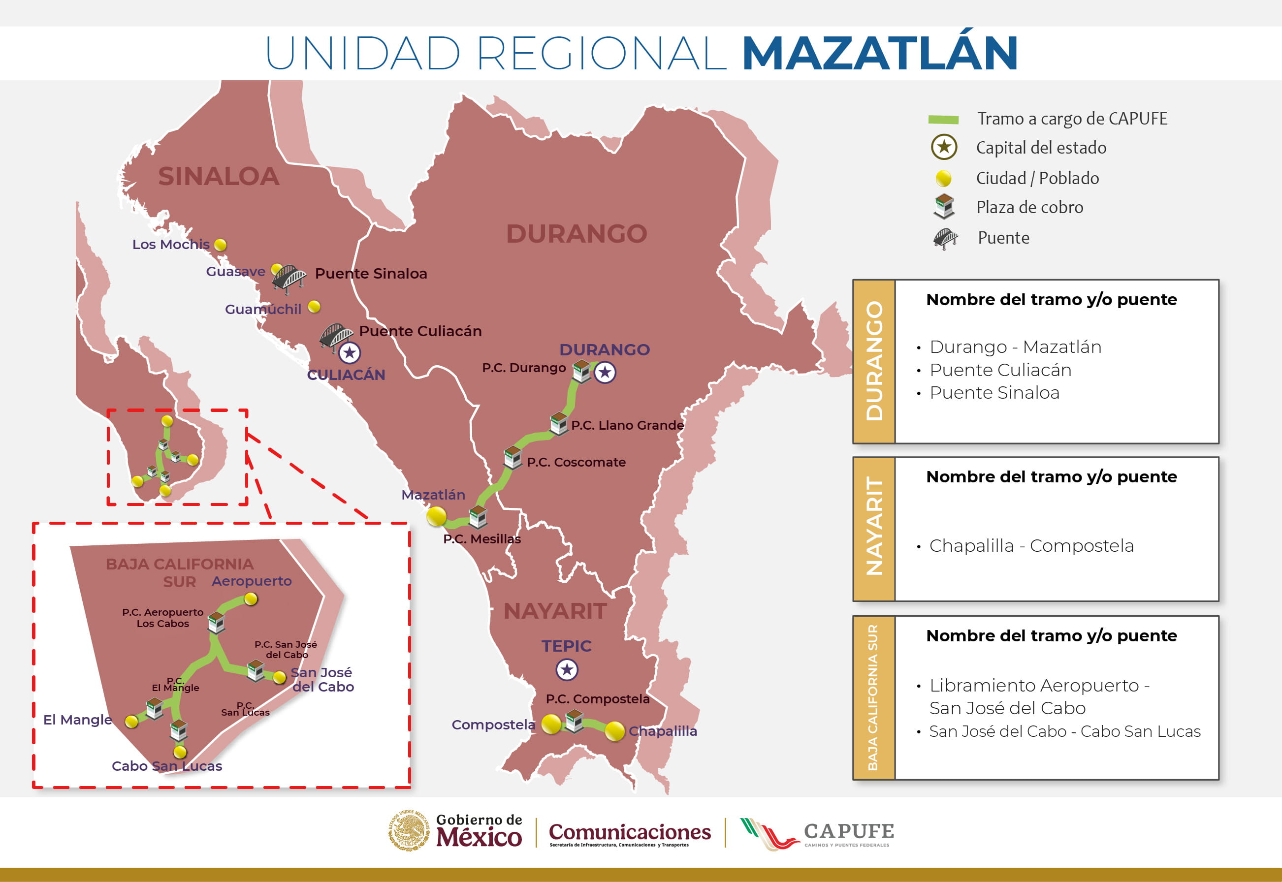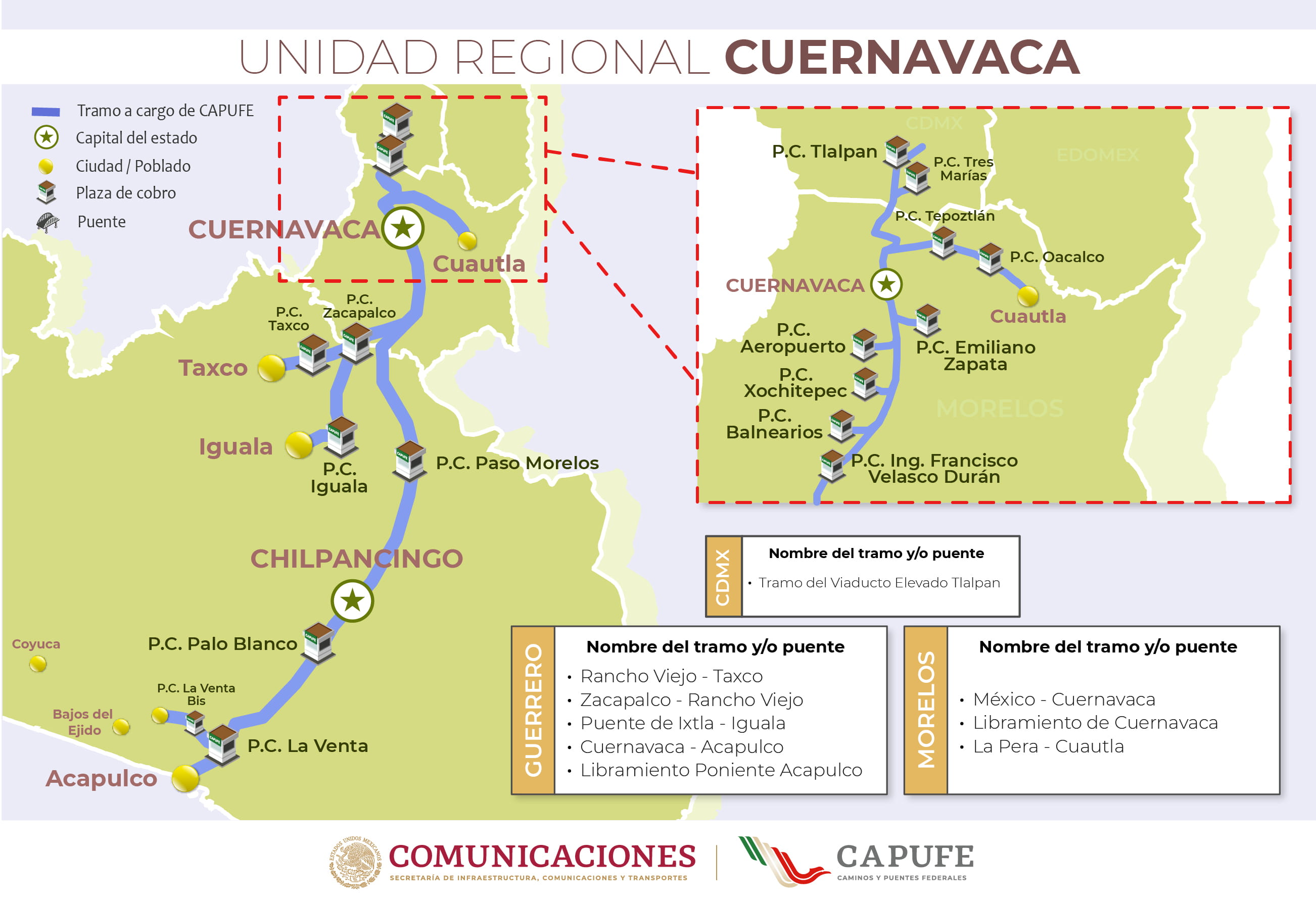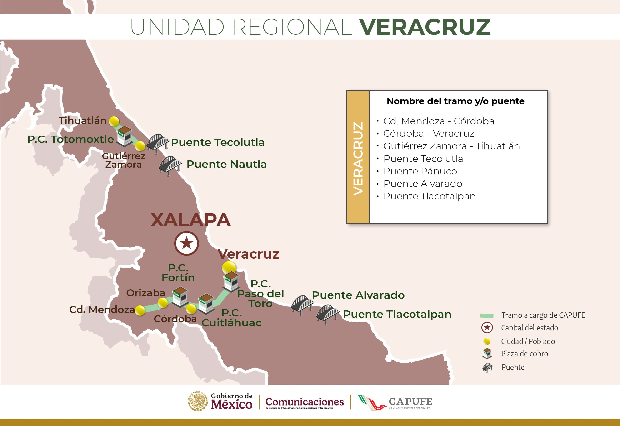 Consulta visualmente las regiones operadas y explora la infraestructura relacionada con CAPUFE. Esta vista te ayuda a identificar de forma más clara la cobertura territorial y la conectividad asociada al servicio.