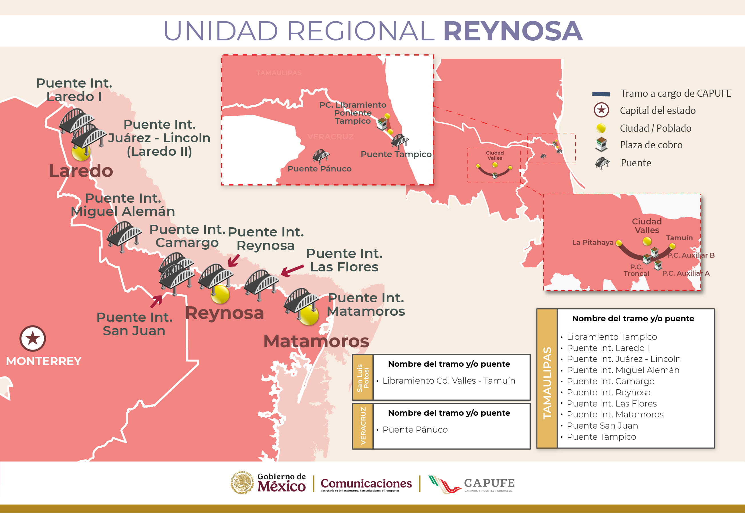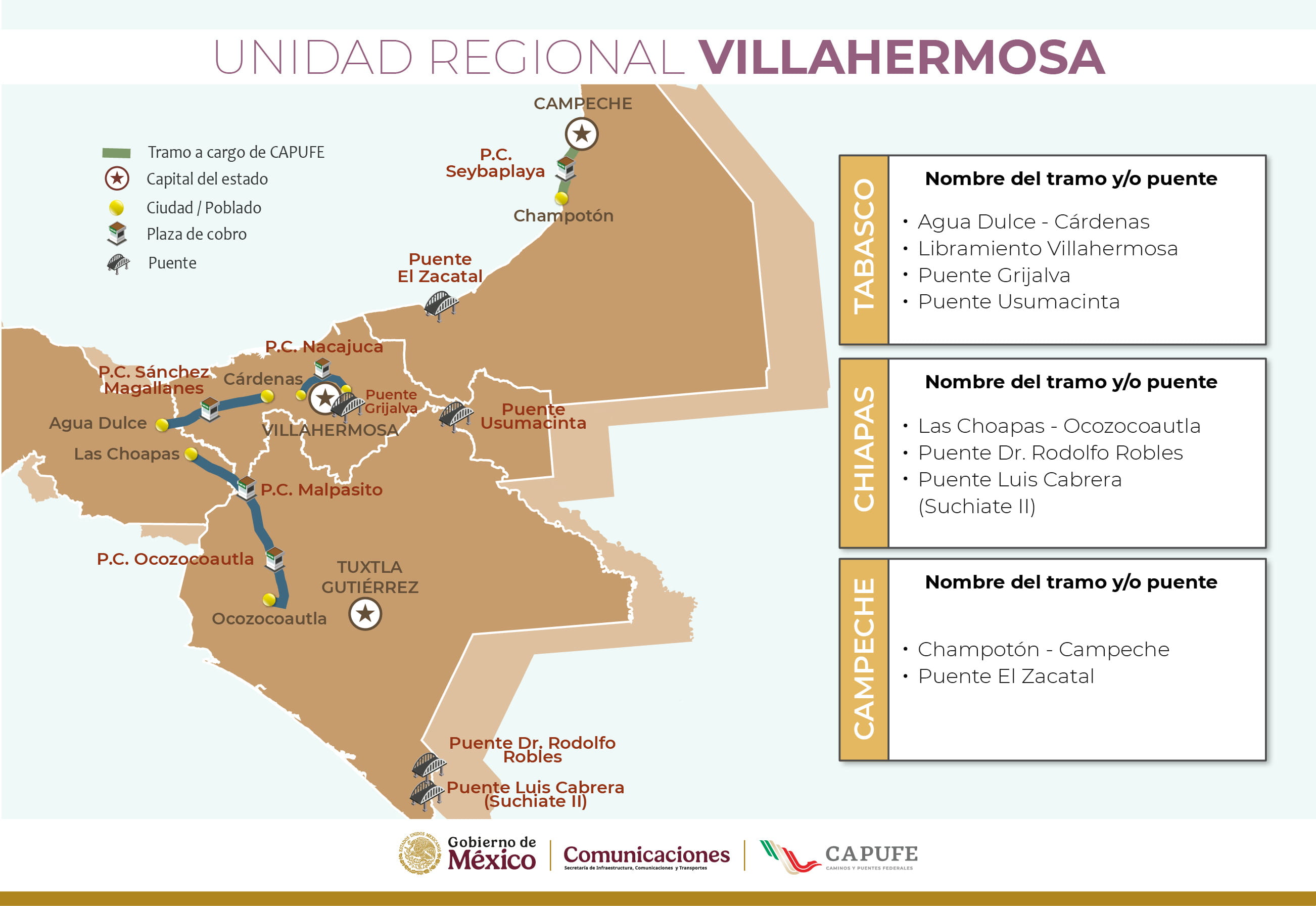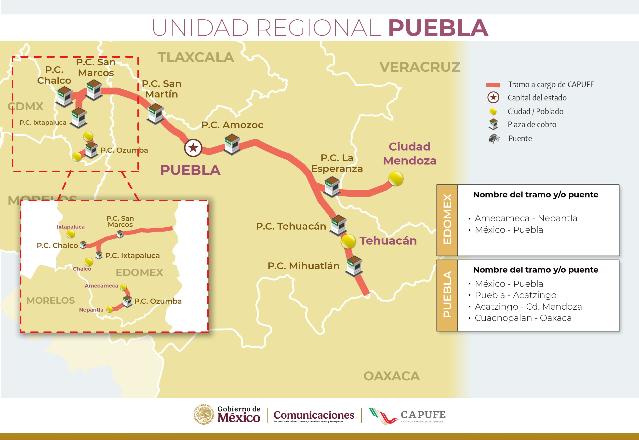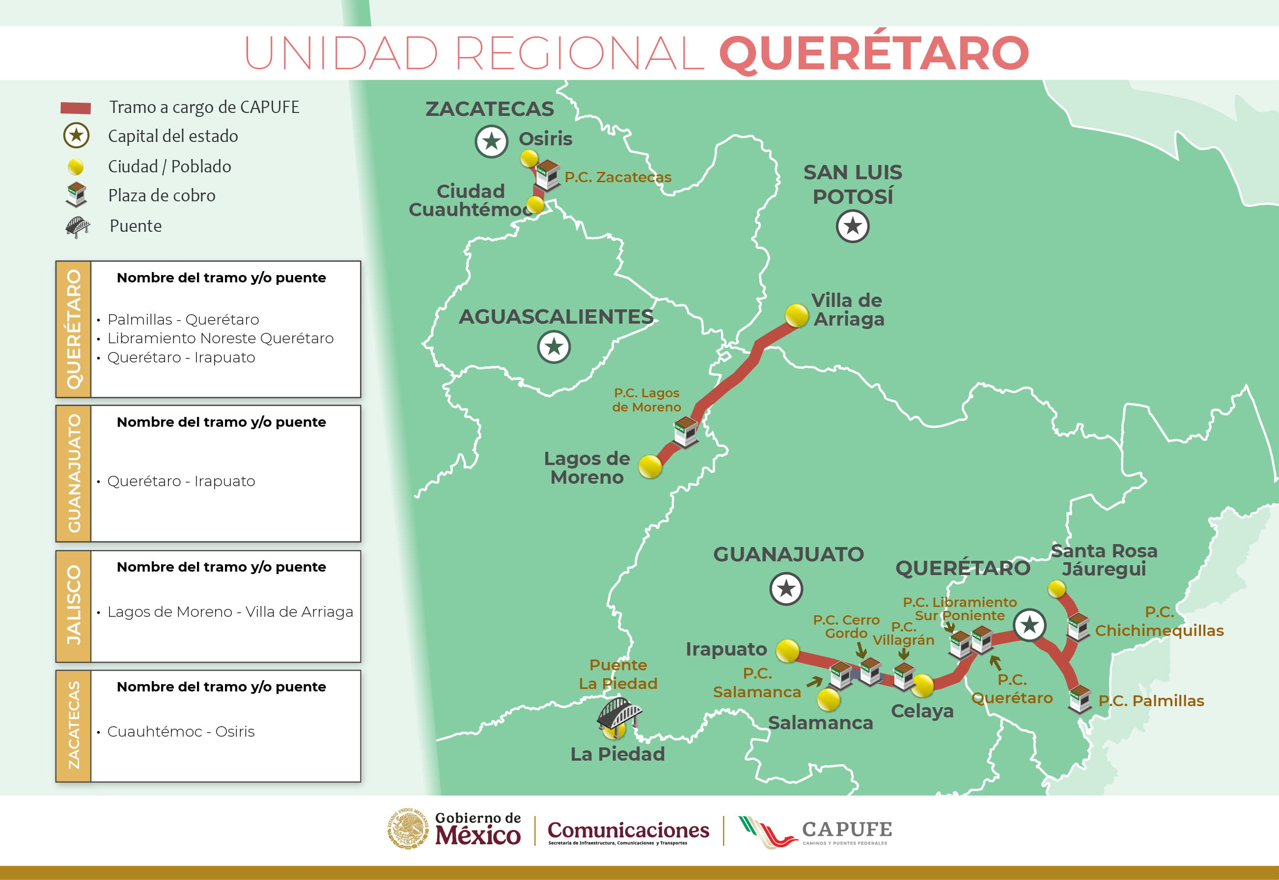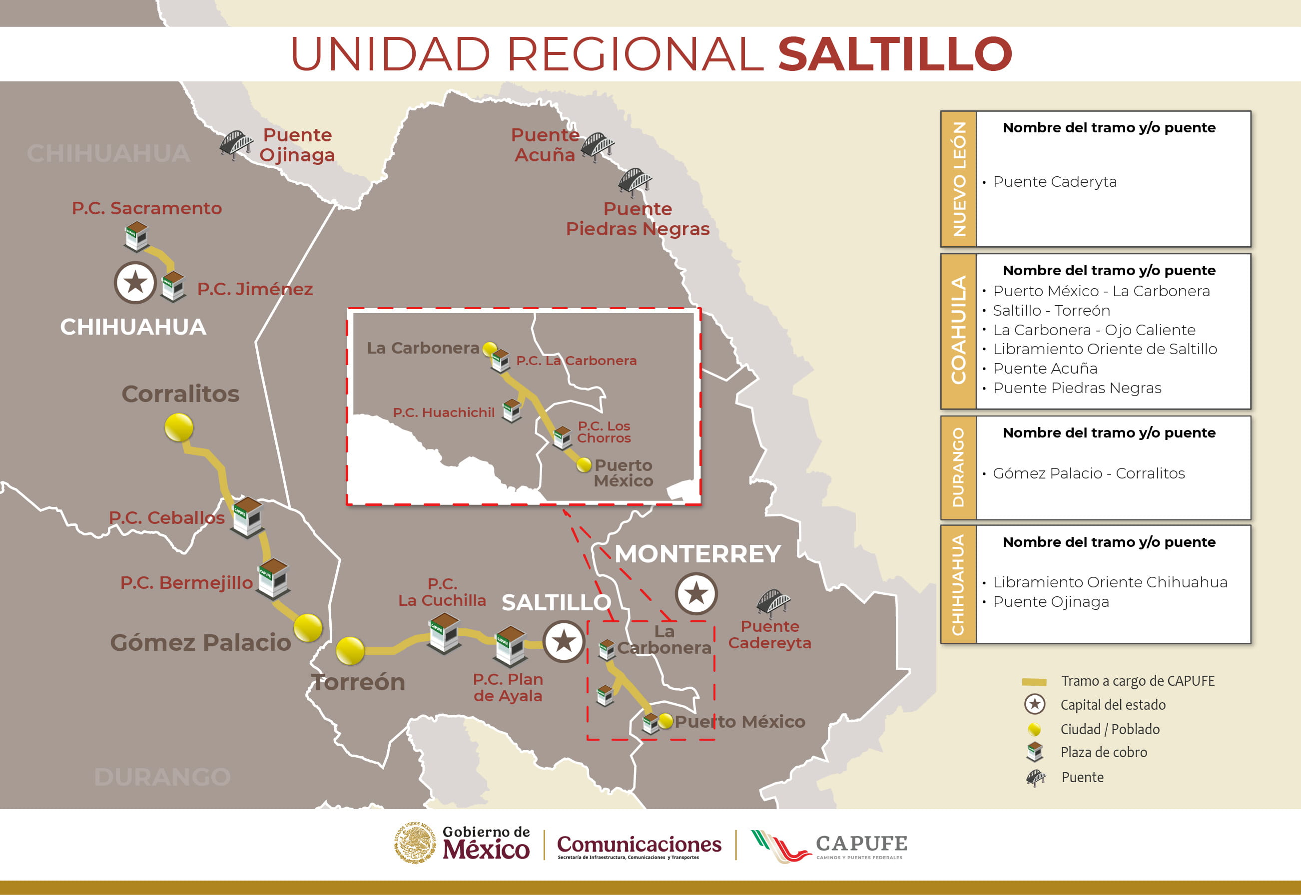 Consulta visualmente las regiones operadas y explora la infraestructura relacionada con CAPUFE. Esta vista te ayuda a identificar de forma más clara la cobertura territorial y la conectividad asociada al servicio.